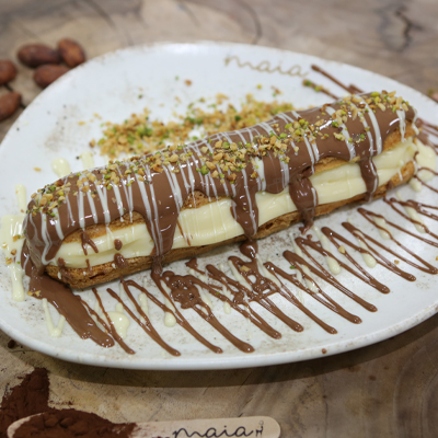 Loading ... Cakes & Pastries Eclairs 350,00 ₺ Eclairs 350,00 ₺ Maia Coffee & Chocolates 16/06/2020Choux Pastry, Maia Cream, Hazelnut and Peanut Pieces, Belgian Milk Chocolate (Optional Strawberry +105,00 ₺)